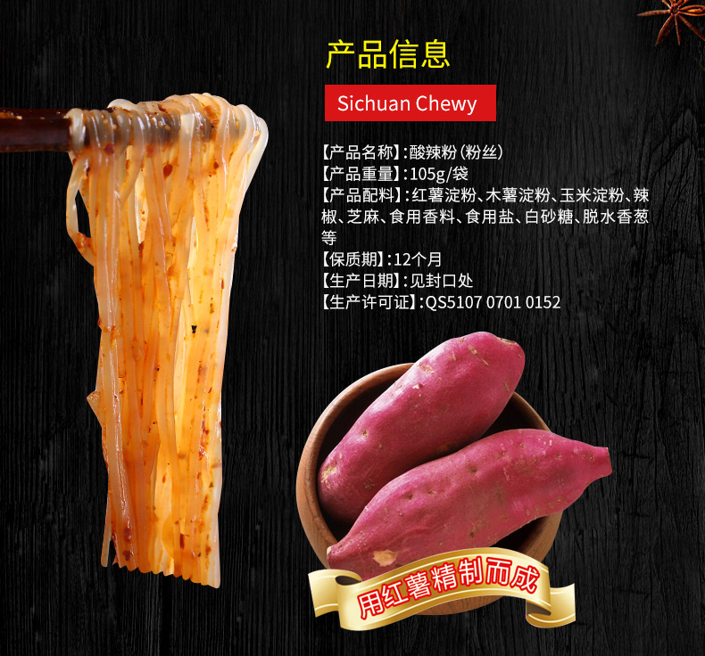 GUANGYOU Sweet Potato Instant Vermicelli - Hot & Sour Flavour 105g bag