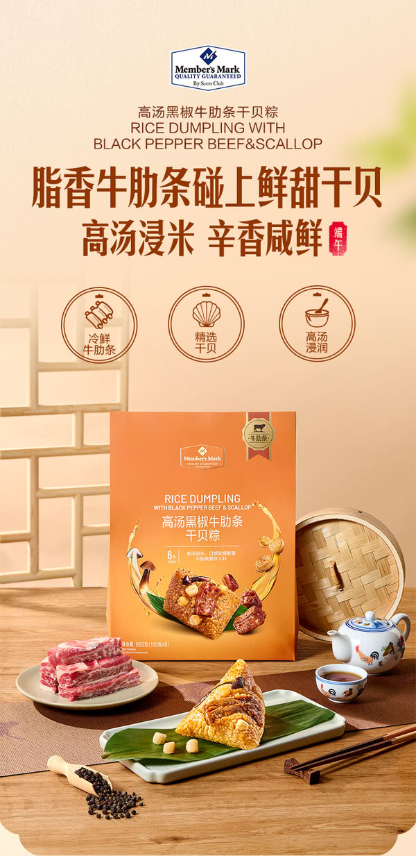 Members Mark Rice Dumpling With Black Pepper Beef & Scallop 660g