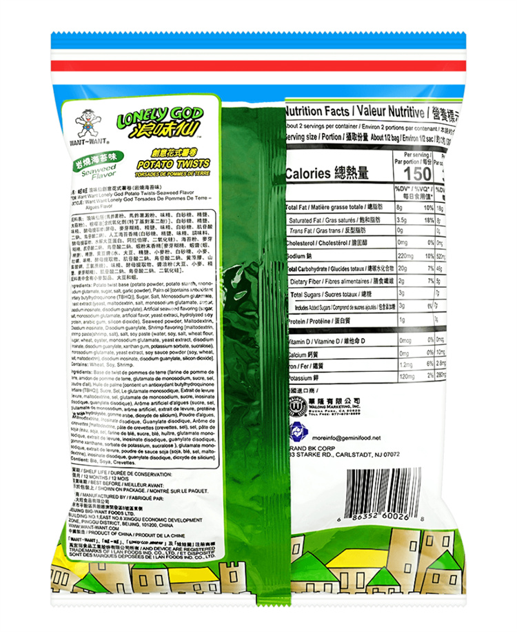 LONELY GOD Potato Roll-Seaweed Flavour 70g