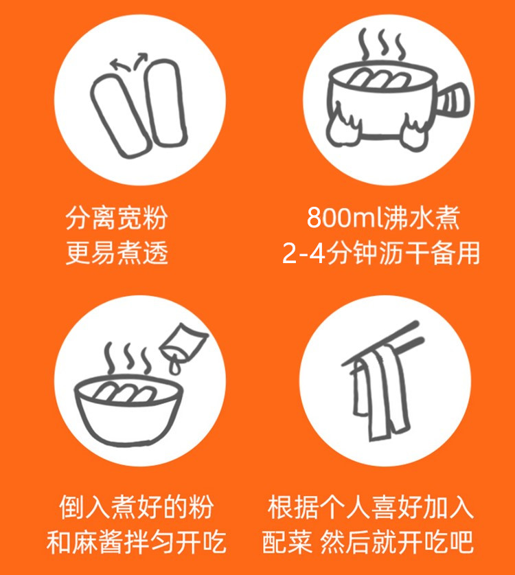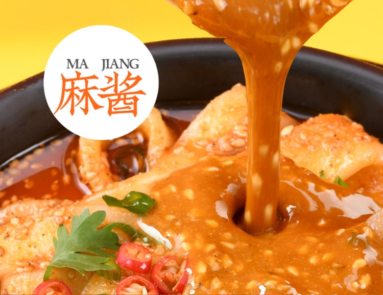 Chili oil bag: Soybean oil 60%, chili, spices (star anise, Sichuan pepper), vitamin E;