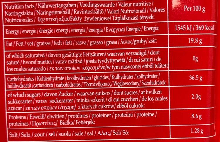 Sauce bag: sesame paste 45%, soybean oil, peanut butter, chili, spices (star anise, bay leaf), yeast extract, colorant E160c;