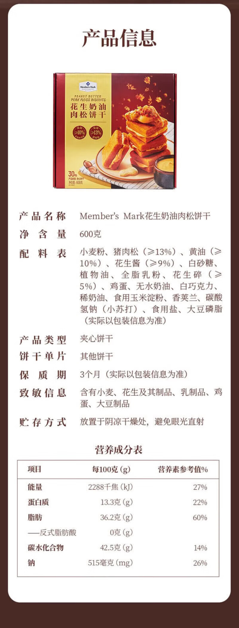 Members Mark Peanut Butter Pork Floss Biscuits 600g