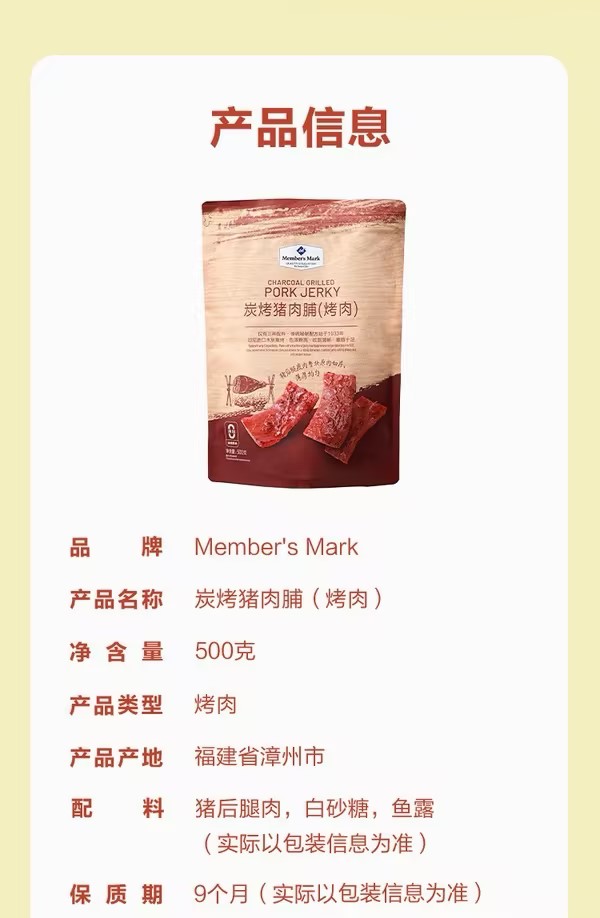 Members Mark Charcoal Grilled Pork Jerky 500g