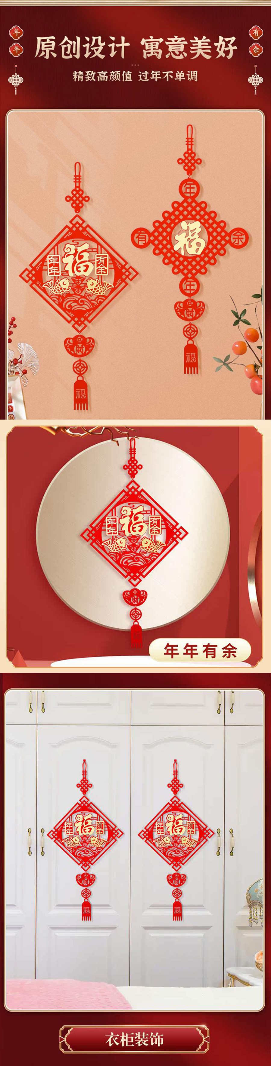 【Years for more than every year】Quadrangle Chinese New Year lucky character pendant