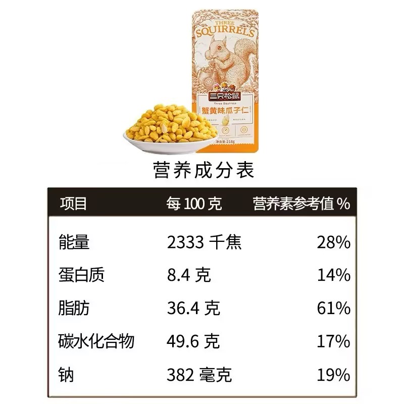 Three Squirrel Crab Roe Flavored Melon Seeds 180g
